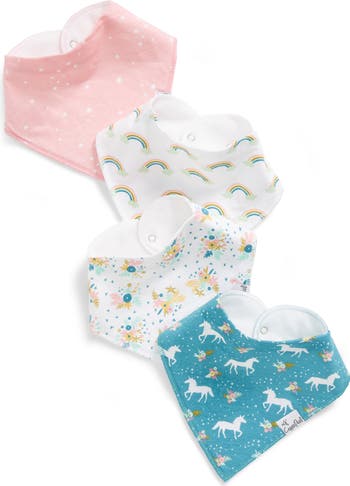Keep baby's clothes clean and dry from any drooling with these bandana bibs made of a soft cotton knit with an absorbent fleece backing.