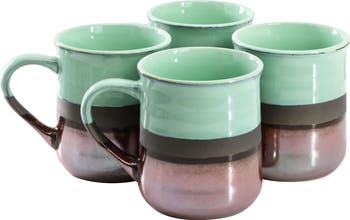 Copper Tonal 4 Piece 18 Ounce Stoneware Cup Set in Celadon