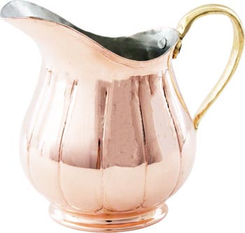 Introducing our Vintage Inspired Copper Small Pitcher, a piece that exudes charm and elegance with a nod to the past. Inspired by the delicate beauty of a fluted ironstone pitcher discovered from 19th-century France, we were captivated by its potential for transformation. Reimagined in copper, this pitcher is brought to life with a full-bodied fluted pattern that wraps gracefully around its exterior, complemented by a sturdy brass handle that adds a touch of sophistication. The craftsmanship invested in this piece ensures that each pitcher is not only a functional item but also a work of art, designed to add a vintage allure to any setting. This small copper pitcher is more than just a vessel for liquids; it's a versatile treasure that brings a unique character to any space it graces. Whether used to serve your favorite beverages for a quaint table setting or as an imaginative container for floral displays, its presence is sure to enhance the ambiance. Its ability to act as an unexpectedly delightful accent makes it a perfect addition to any room in your home, from the kitchen to the living area, infusing every corner with a hint of antique charm. Embrace the beauty and tradition this Vintage Inspired Copper Small Pitcher offers, making every moment at home a little more special. * Dimensions: 6.5"W with handle x 5.25"Tall * Care instructions come with your purchase About Coppermill Kitchen Coppermill Kitchen marries vintage character and modern luxury to produce pieces with a timeless style and functionality. Designed with an expert eye for detail, each piece has a story to tell and will be cherished for generations to come.