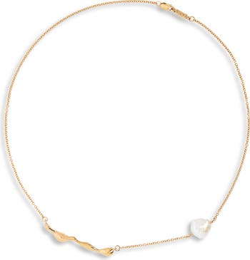 A sculptural twist and freshwater pearl bring equal parts texture and luster to this delicate chain necklace.