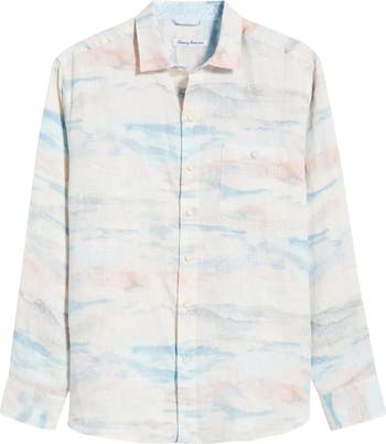 Gauzy linen patterned in abstract ocean waves invites relaxed, breezy comfort in a shirt with a sun-faded wash that takes you from casual days to relaxed nights with ease. Tuck in the hem when you want to elevate a look or leave it out whenever you're kicking back.