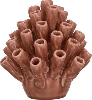 - A beautiful and unique stoneware vase that has a coral shaped design and a crackle glaze in coral color