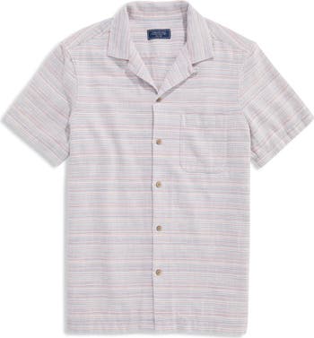 Fine textured stripes against cool, breathable cotton make this camp shirt a getaway essential that'll see you stylishly from the pool deck to dinner at the resort.