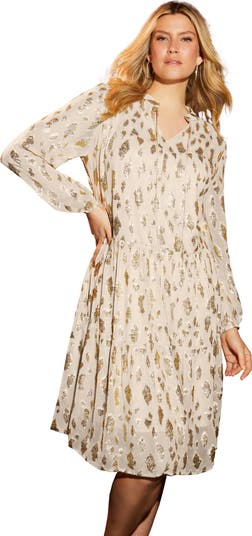 A breezy yet stunning georgette dress designed with eye-catching metallic designs throughout.