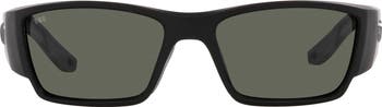 Sleek crystal lenses enhance the suave style of rectangular sunglasses accented with logo hardware at the temples.