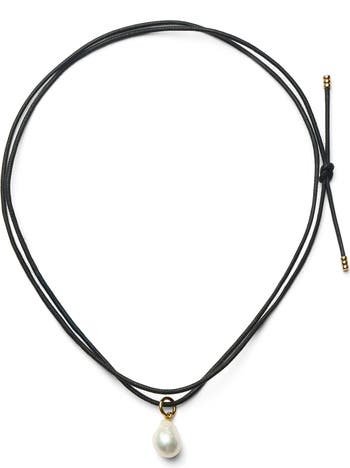 A baroque cultured pearl dangles from a slim cord to creat an earthy necklace that stacks well with others.