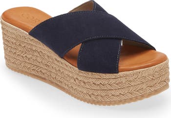 An espadrille-style wedge keeps your summery look classic in a slide sandal with suede straps.