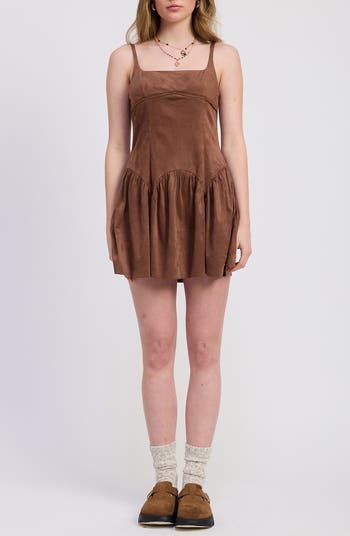 This breezy open-back minidress features soft sheen and a playful fit-and-flare silhouette that’s all about movement.