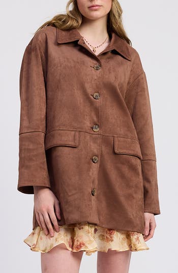 Dropped shoulders accentuate the relaxed, oversized fit of this suede jacket that's ready to play a key role in your everyday wardrobe.