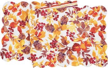Celebrate the beauty of the season with the Cordelia Watercolor Falling Leaves Quilted Cotton Table Runner, designed to bring warmth and elegance to your autumn gatherings. Measuring 14" x 51", this runner features a beautiful watercolor-inspired leaf design in rich fall tones, accented with scalloped edges for a refined finish. Its reversible construction provides two stylish looks in one, giving you the flexibility to change your décor with ease. Made from 100% cotton and quilted for texture, this runner blends durability with timeless style, ensuring it will enhance your dining table for years to come. Perfect for Thanksgiving meals, seasonal family dinners, or simply elevating everyday dining, it creates a welcoming atmosphere for your guests. Machine washable for convenience, the colors and stitching remain fresh after each use. This runner also makes a thoughtful gift for loved ones who enjoy decorating their homes with seasonal charm, making it both functional and heartfelt.