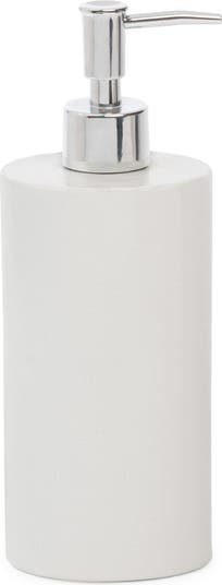 Handcrafted from white ceramic with a light burlap texture, this soap dispenser keeps your vanity neat with understated sophistication.