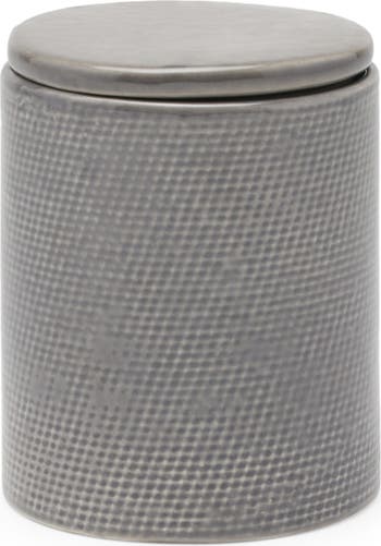 Upgrade your vanity with this handcrafted ceramic storage canister finished with a pleasing burlap texture.