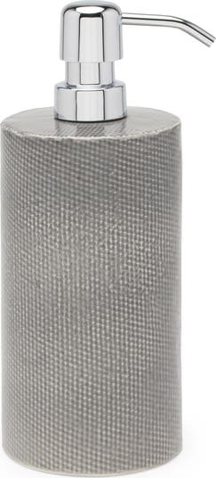 A burlap-textured finish lends a modern aesthetic to a ceramic soap dispenser that will elevate your bath decor.