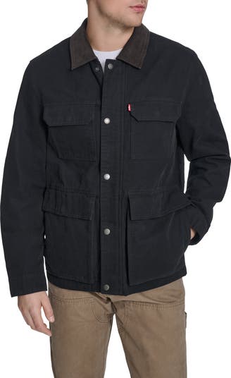 Report for weekend duty in a casual jacket cut from sturdy cotton canvas and authenticated with a red tab at the chest pocket.