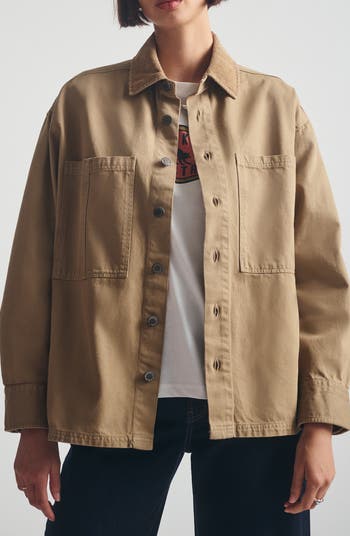 A plush corduroy collar amps up the cozy vibes of this overshirt cut from a cotton twill in a hearty weight that makes it an ideal go-to for layering as the season's chill starts to deepen.