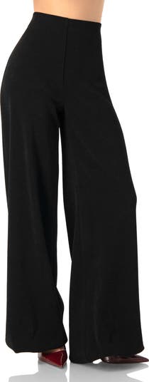 Elegant corduroy high-waisted wide-leg trousers with a sleek, pocket-free design.