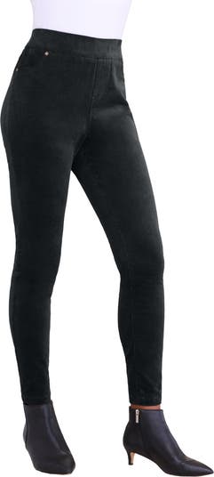 These pants offer the best of both worlds with the style of corduroy and the comfort of your favorite leggings. The figure-loving fabric and slimming silhouette offer a fit that's unique to your shape. Elasticized waistband. Faux front pockets and two back patch pockets.