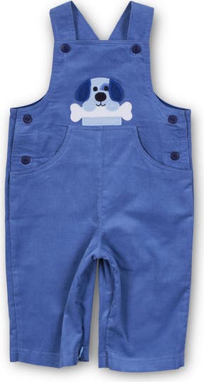 Florence Eiseman’s whimsical periwinkle corduroy longall is detailed with an adorable appliqué dog with loose ears and a playful bone. Designed for practicality and charm, it features adjustable double-button shoulder straps, front pouch pockets, and convenient side waist buttons. Machine washable softness for playful comfort.
