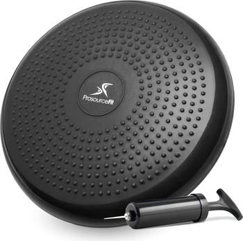 The ProsourceFit Core Balance Disc is a fun, versatile tool for personal trainers, group fitness instructors, Pilates instructors, physical therapists, or anyone who wants to improve their balance and core strength. This lightweight, portable disc creates an unstable surface that can be used for a variety of purposes such as standing balance exercises, seated or kneeling Pilates core workouts, or prone movements like planks and push-ups. It can also be used as a seat cushion for both adults and children. One side features small bumps to provide traction and grip, while the other has more tactile, flexible raised bumps for a massaging effect. The disc may be used on either side, according to your preference. The stability disc is 14-inches in diameter and approximately 3-inches high, depending on how much you inflate it (not to exceed 5”). It comes with a hand pump so you can inflate it according to your needs and comfort level. Great to have on hand at gyms as well as at home for strengthening, balance and therapy exercises you can do anywhere. Comes in 6 colors.