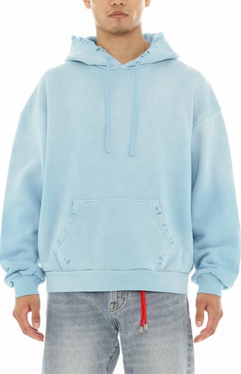 Cult of Individuality Core Distressed French Terry Pullover Hoodie, Alternate, color, Blue Glow