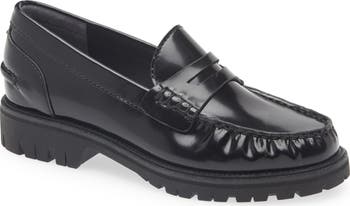 Polished style meets everyday comfort in this burnished leather penny loafer grounded by a cushioned footbed.