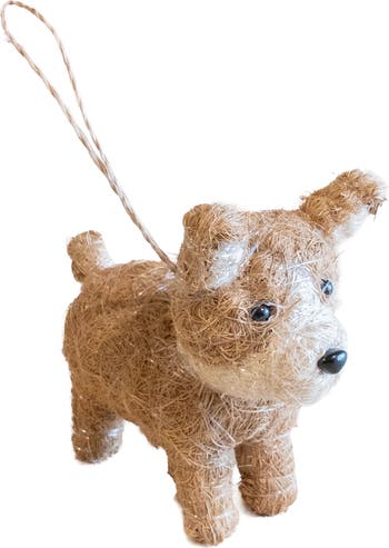 Handwoven by artisans from natural coconut coir, this whimsical ornament brings rustic paw-sonality to any dog lover's decor.