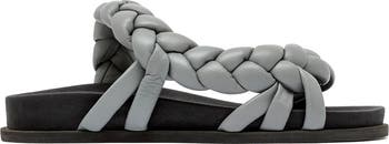 - Design: Distinctive braided upper strap, slip-on style, open toe.