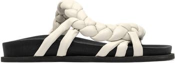 - Design: Distinctive braided upper strap, slip-on style, open toe.