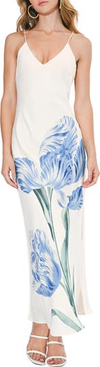 An artistic floral motif heightens the modern sophistication of this soft and flowy slipdress.