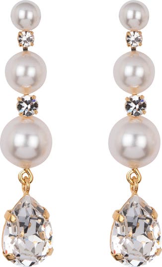 Creamy glass pearls and Austrian crystals alternate luster and sparkle as they cascade these glamorous drop earrings handcrafted in New York.