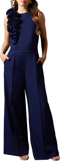 Striking corsage detail adorning the shoulder. Elegant round neckline for a sophisticated look. Pleated wide-leg trousers for a flowing silhouette. Sleeveless design perfect for warm-weather events. Flattering regular fit suitable for various body types. Make a lasting impression at your next formal occasion with this stunning corsage detail pleated jumpsuit from coast.