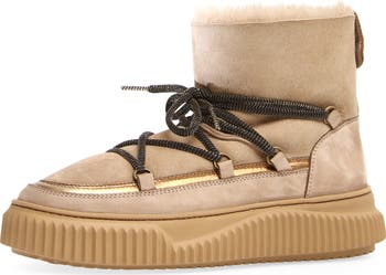 Genuine-shearling lining adds just the right amount of plush, cozy comfort to this suede platform bootie.