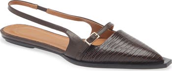 Lizard-embossed leather highlights the pointy toe of this outfit-elevating slingback flat.