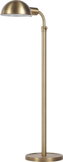 A dark antique brushed brass-plated finish provides a time-worn patina on this adjustable floor lamp that adds a touch of chic lighting to any room's decor.