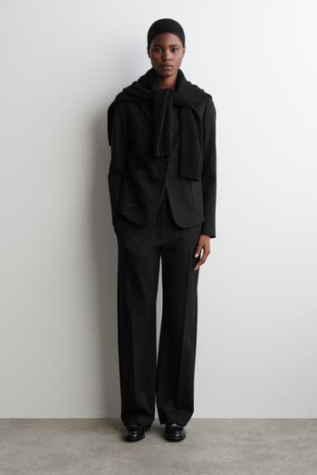 Rendered in a rich Bordeaux hue, these refined pants are tailored in a streamlined, straight-leg silhouette. They're crafted from a fluid Milano rib fabric and designed with belt loops, subtle pockets and an adjustable tab inside the waistband – a COS signature. Style them as a suit with the matching blazer.