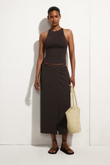 Sculpting fabrics and minimal silhouettes define the COS resortwear collection. This racerback tank top is made from the same double-layered material as the coordinating bikini and features bonded seams and a rounded neckline. Style it with the matching sarong.