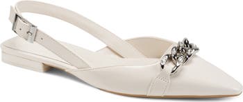 Glossy silvertone chain links accentuate the pointy toe of this endlessly sophisticated slingback flat that works for your 9-to-5 and beyond.