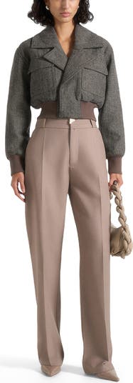 Cosette Herringbone Wool Lapel Bomber Jacket
