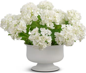 The Cosima RealTouch Snowball Hydrangea Arrangement features abundant clusters of crisp white hydrangea, arranged to create a full, rounded silhouette with a beautifully balanced presence. Set in a refined metal vessel with a classic pedestal profile, this piece brings understated elegance to dining tables, consoles, and formal living spaces. Crafted with CocoBella’s signature RealTouch materials, Cosima offers a lifelike, polished accent that feels both traditional and enduring. A lasting luxury, timeless and unrivaled.
