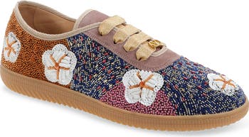 Intricate beadwork give a mosaic look to this low-top sneaker seen in Alessandro Michele's spring '26 runway presentation.