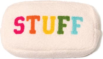 Soft and cozy, this cosmetic bag features an embroidered plush exterior. Perfect for storing makeup or small essentials, it offers a zip-top closure and a fun design that girls will love.