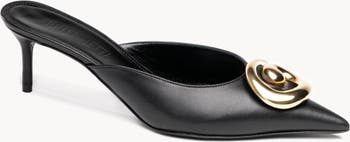 Hand-crafted in Italy, the Cosmo "Cosmo" Mule is our take on statement jewelry—for your feet. Set on a stiletto kitten heel, its minimalist silhouette is anchored by a bold, sculptural swirl embellishment. Just like your favorite chunky accessory, Cosmo has the power to make any simple outfit look instantly elevated.