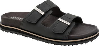 Find the ideal fit in this supportive slide sandal designed with a cushioned footbed and two adjustable straps.