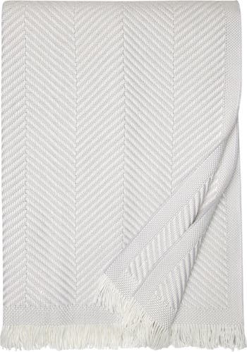 Cotton threads are woven into a chic herringbone pattern on this ultrasoft and lightweight throw trimmed with feathery fringe.