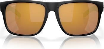 Mirrored lenses that are polarized to reduce glare add save style and functionality to these contemporary square sunglasses.