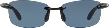 Sleek, minimalist style in a rimless construction defines these sunglasses fitted with large polarized lenses in a handsome angular shape.