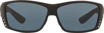 Lightweight polycarbonate 580P polarized lenses ensure performance clarity in sporty fishing sunglasses with a curved profile.
