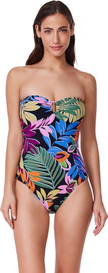 Make a bold statement in the Costa Del Sol Bandeau One Piece. With a keyhole design and matte gold insert at the bust, this swimsuit features built-in soft cups, adjustable/removable straps, tummy control, and full front and back lining. For the perfect fit, we recommend sizing up one size.