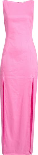 Dual front slits ease your movements while adding a bit of flirt to a maxi dress cut from a linen blend that's lightweight and easy to wear even as the temp rises.