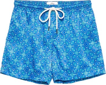 Peninsula swim shorts with Mediterranean style pattern. Two side pockets with contrasting interior and soft touch mesh lining. Meticulous attention to detail and timeless elegance make this product one of a kind.